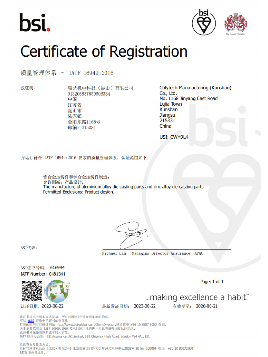 Colytech is committed to delivering high-quality products on time and cost-effectively. We respect customer requirements and intellectual property throughout the process. We are dedicated to maintaining a high standard of quality and commitment to customer service. Colytech has been ISO 9001 certified and is in the process of applying for IATF 16949 certification.